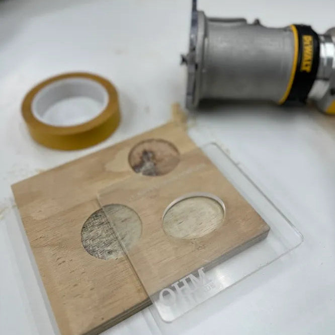 This product accompanies an order of inlay-ready logo tags. Our 1/4” acrylic templates are custom made to fit your logo tags for a crisp, clean inlay. All templates come with a paper film on one side and should be removed prior to using.